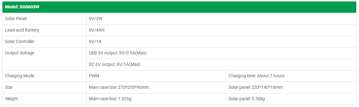 SG0603W Series Solar Lighting System